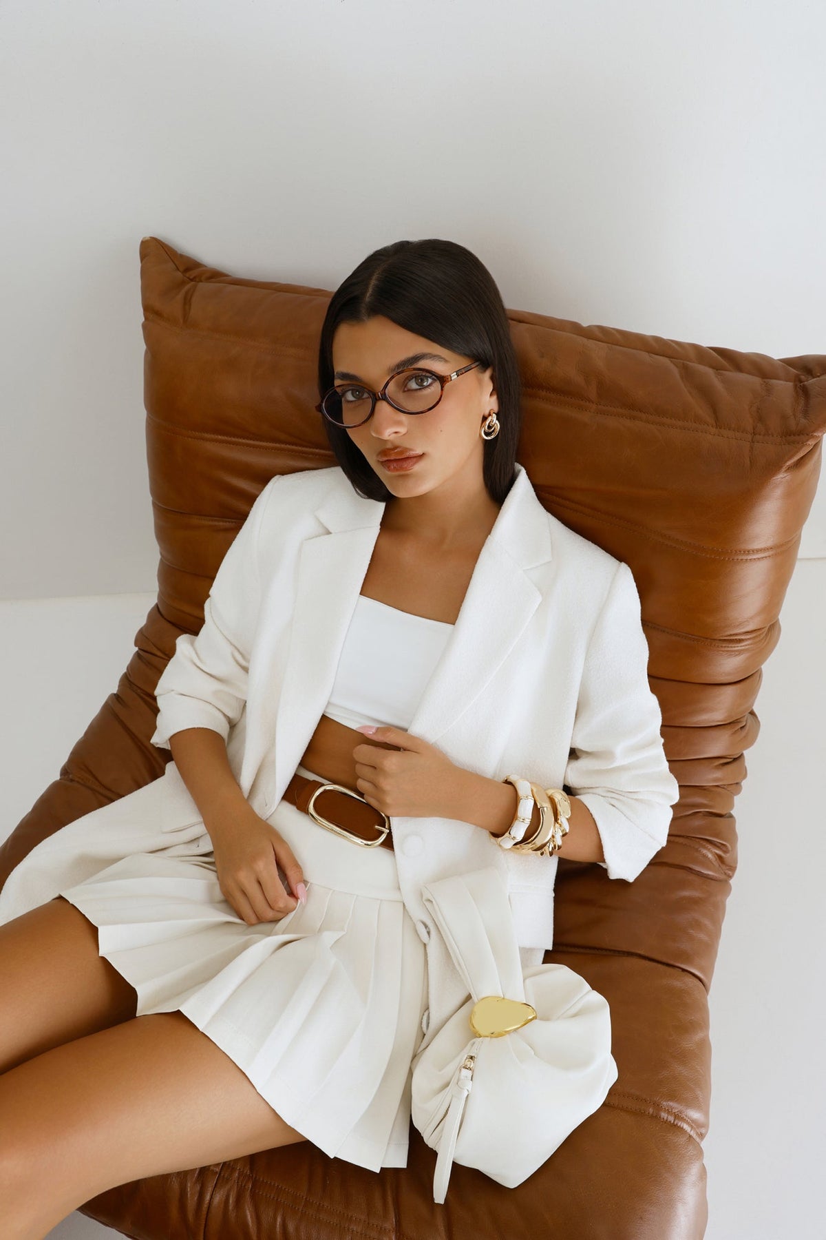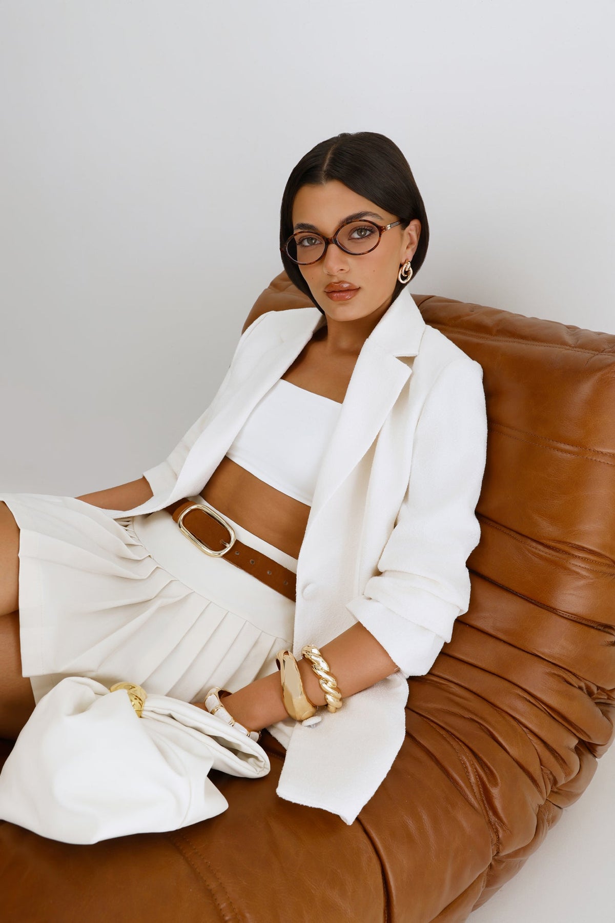• Statement hardware: Gold cinch detail for elevated style.