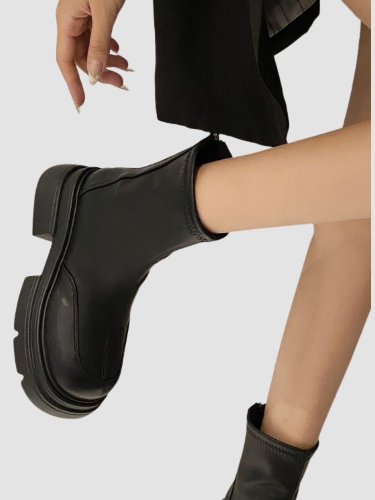 The Celine Boots feature a short barrel design with a round toe and platform sole. Their defined silhouette and medium heel create balance between style and everyday wear. A versatile pair suited for casual outings, dates, or styled looks.