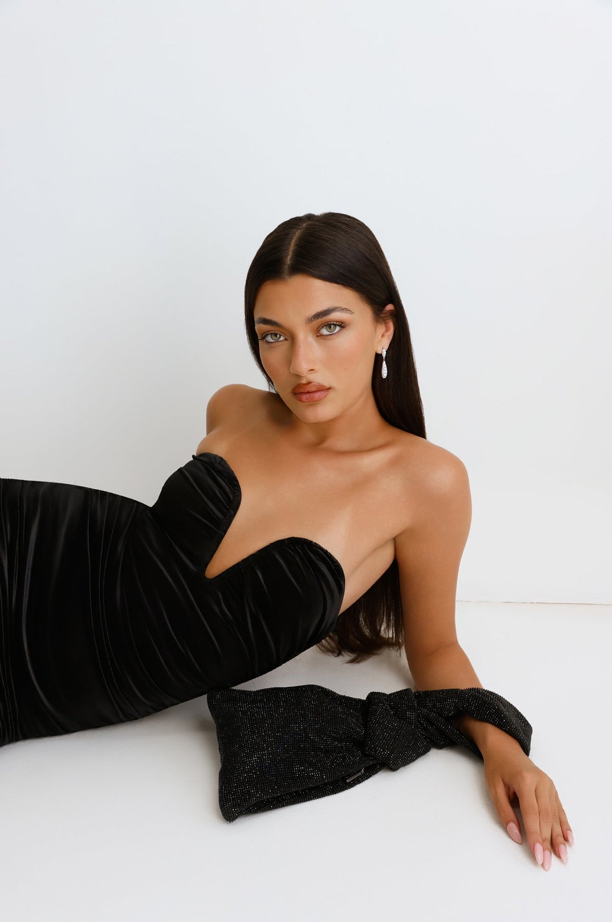 Camille | Women’s rhinestone wristlet bag with silver hardware
