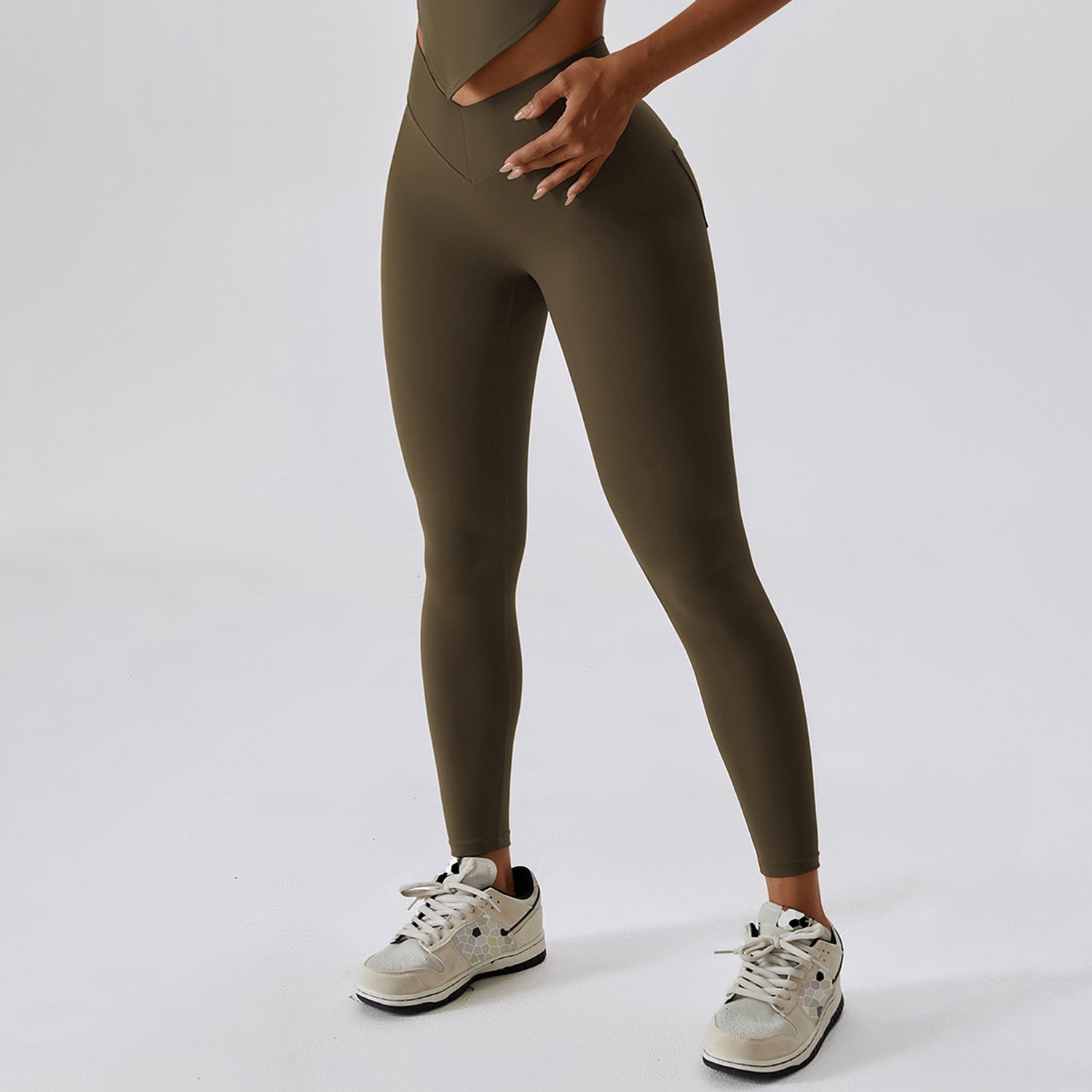 These leggings are designed to combine standout looks with all-day performance. The V-shaped waistband flatters the waistline, while the pleated hip design enhances natural curves. Made from a soft nylon-spandex blend, they offer 4-way stretch, breathability, and squat-proof confidence. Perfect for workouts, running errands, or casual wear, with a convenient back pocket to keep essentials close.