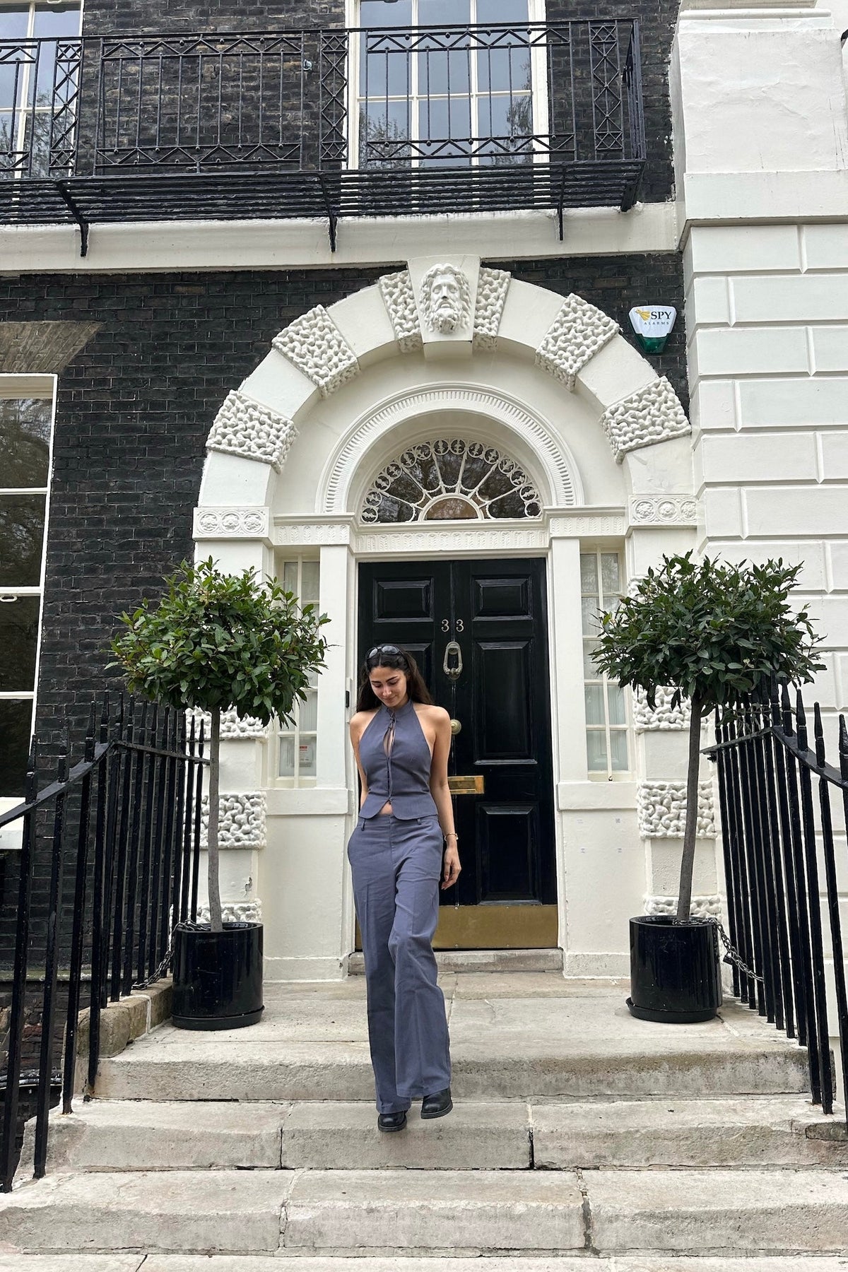 This pants redefine casual sophistication with their wide-leg silhouette and tailored details. Designed in breathable cotton, these low-rise trousers blend structure with a relaxed fit, making them perfect for versatile styling. Featuring side pockets, faux welt pockets at the back, and belt loops for added practicality, they balance function with fashion. The straight-leg cut flows seamlessly, elongating the figure while keeping comfort in mind. From brunch with friends to evening plans, these pants deliver sleek confidence for any setting.