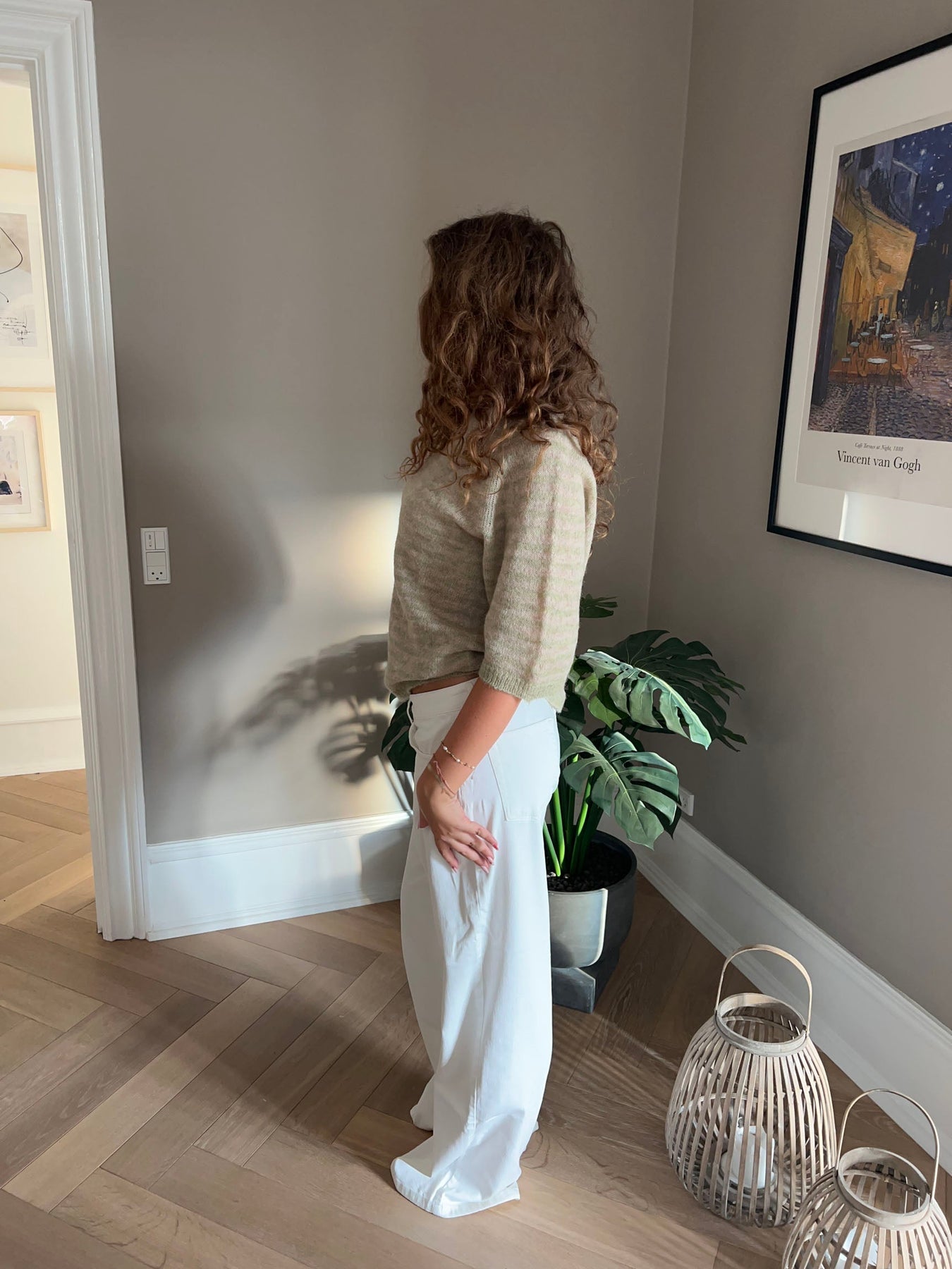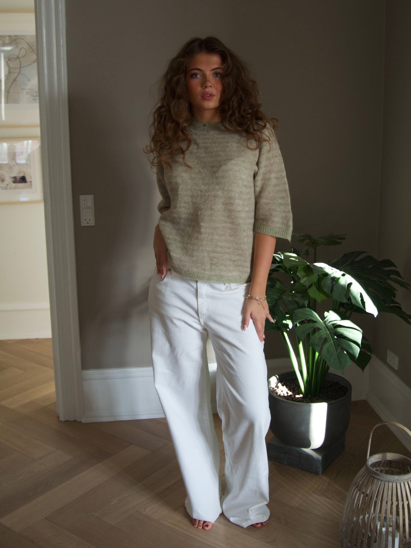 The Colette sweater features a relaxed silhouette with mid sleeves and a striped pattern that adds balance and charm. Its versatile cut makes it suitable for everyday wear or casual outings, styled easily across seasons.
