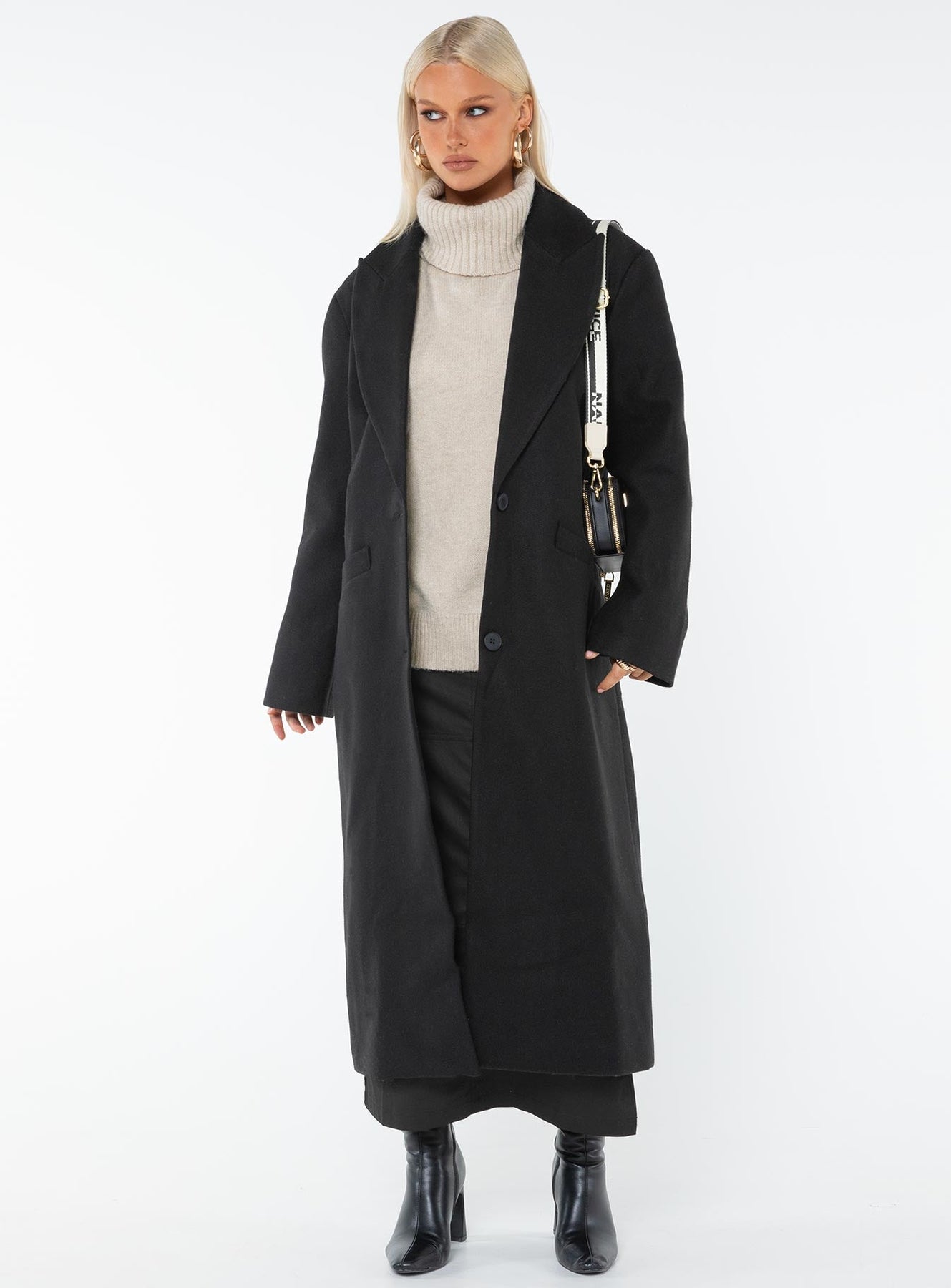 This long coat is designed for timeless sophistication with clean lines and a refined silhouette. Featuring a lapel collar, front button fastening, and practical front pockets, it delivers a perfect balance of function and style. The non-stretch, fully lined construction provides smooth layering and a polished drape. Crafted from 100% polyester, this coat complements both professional and casual ensembles effortlessly.