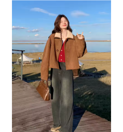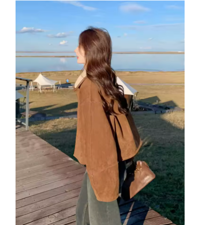 This reversible coat features a plush lambswool texture on both sides, offering two wearable looks in one simple piece. Its loose, comfortable outline supports effortless layering, while the single-breasted closure maintains a clean and practical structure. The retro-inspired finish adds quiet character to everyday outfits, making it a versatile top for transitioning through cooler weather. Designed for relaxed autumn wear, it provides steady warmth with an understated, easygoing style.