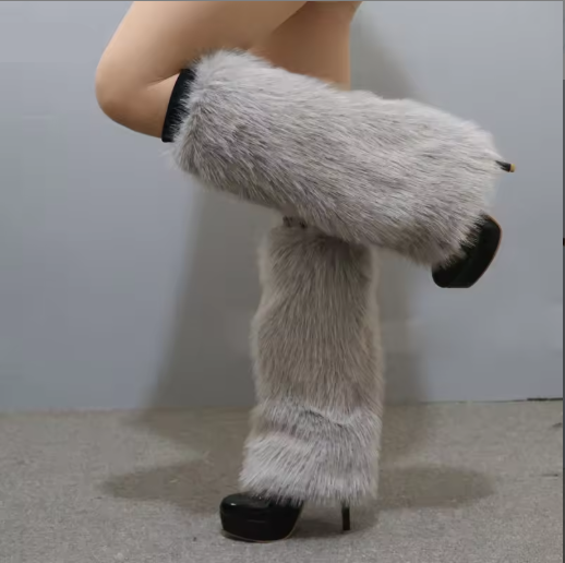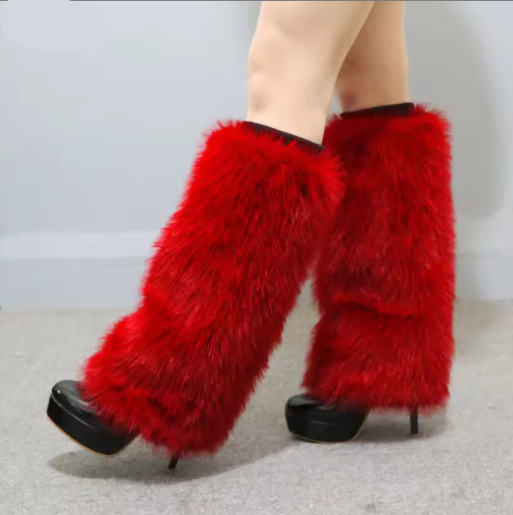 These faux-fur leg warmers feature a soft, fluffy surface that adds gentle volume while maintaining a comfortable, lightweight feel along the leg. The flexible structure offers an easy pull-on fit, creating a warm layer that enhances both casual and dressed styling during cooler seasons. Their balanced length pairs well with boots, sneakers, or layered outfits, making them a simple, expressive accessory for winter looks. Designed for steady comfort, they bring a refined, seasonal touch to everyday wear.