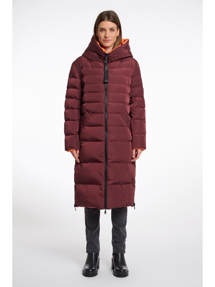 Stay warm and effortlessly stylish in this women’s long reversible coat, designed to combine function and elegance. The soft padding and high-neck hooded design provide reliable protection against the cold, while side zippers offer easy movement and comfort. A versatile outerwear piece that transitions seamlessly through the seasons.