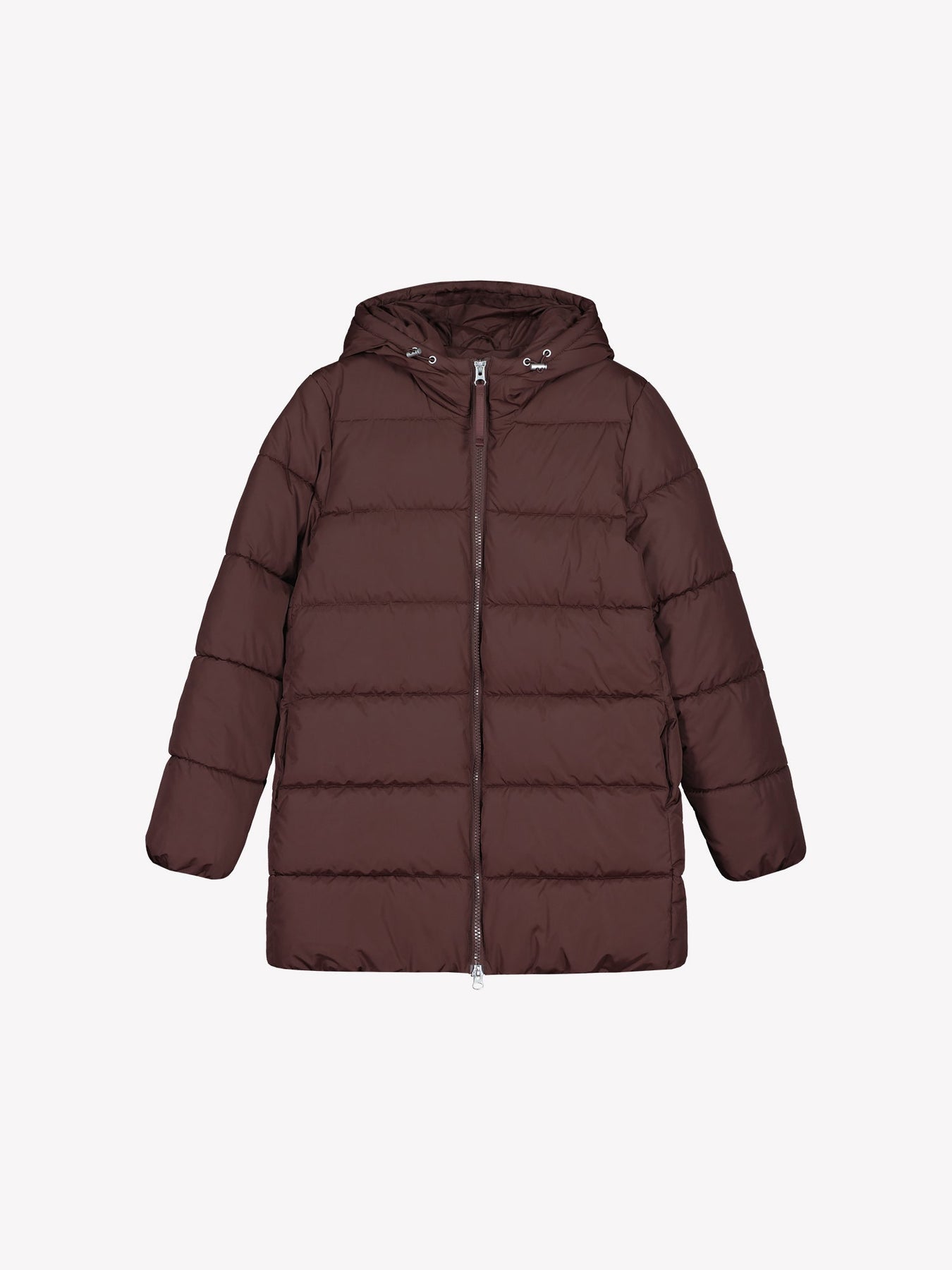 This padded coat blends modern design with practical comfort in a lightweight structure. It features an adjustable hood, elasticated cuffs and hem, and a two-way zip with a wind guard for added protection. Crafted from a smooth, water-repellent fabric with soft insulation, it provides warmth and ease for daily wear. Functional side pockets complete the design for a balanced mix of style and practicality.