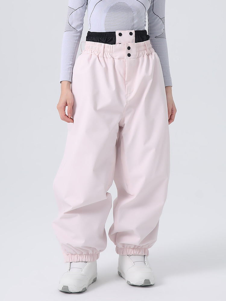 These women's snow pants feature a wide, baggy outline that creates a dynamic and free-flowing silhouette built for natural movement in snowy environments. Their cargo pocket layout and adjustable waist detailing make them suited for mountain trips, snow sports, and all-around winter exploration.