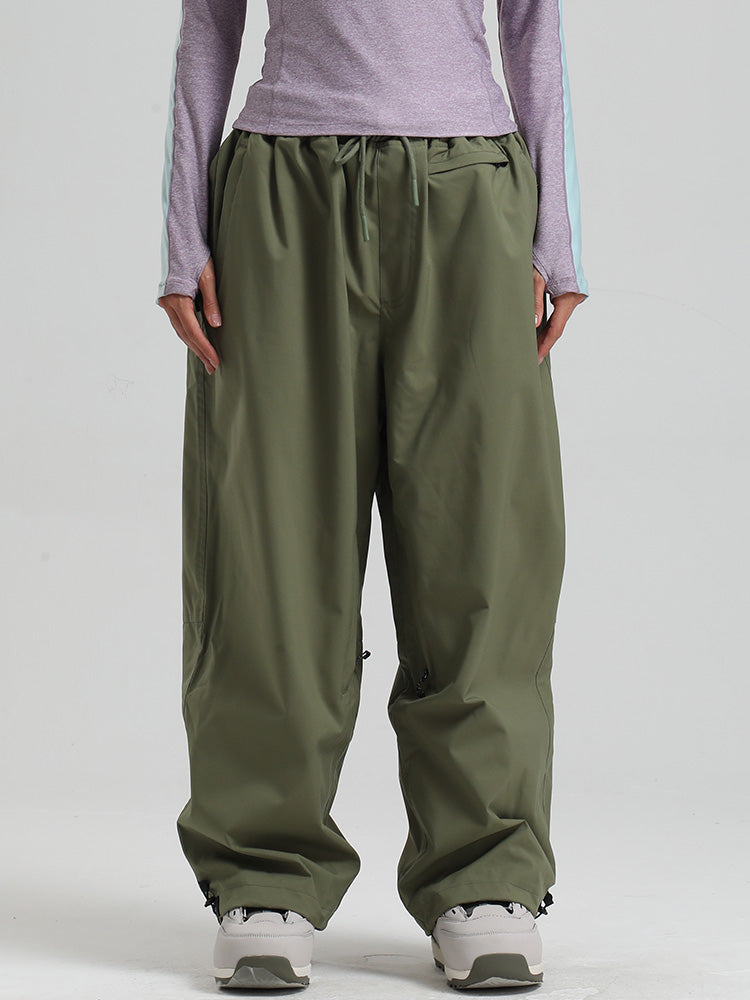 These women's snow pants feature a wide, baggy outline that creates a free-flowing and dynamic silhouette suited for active terrain and freestyle riding. Their high-rise gaiter design, multi-pocket layout, and flexible leg features make them ideal for mountain laps, backcountry treks, and energetic cold-weather adventures.