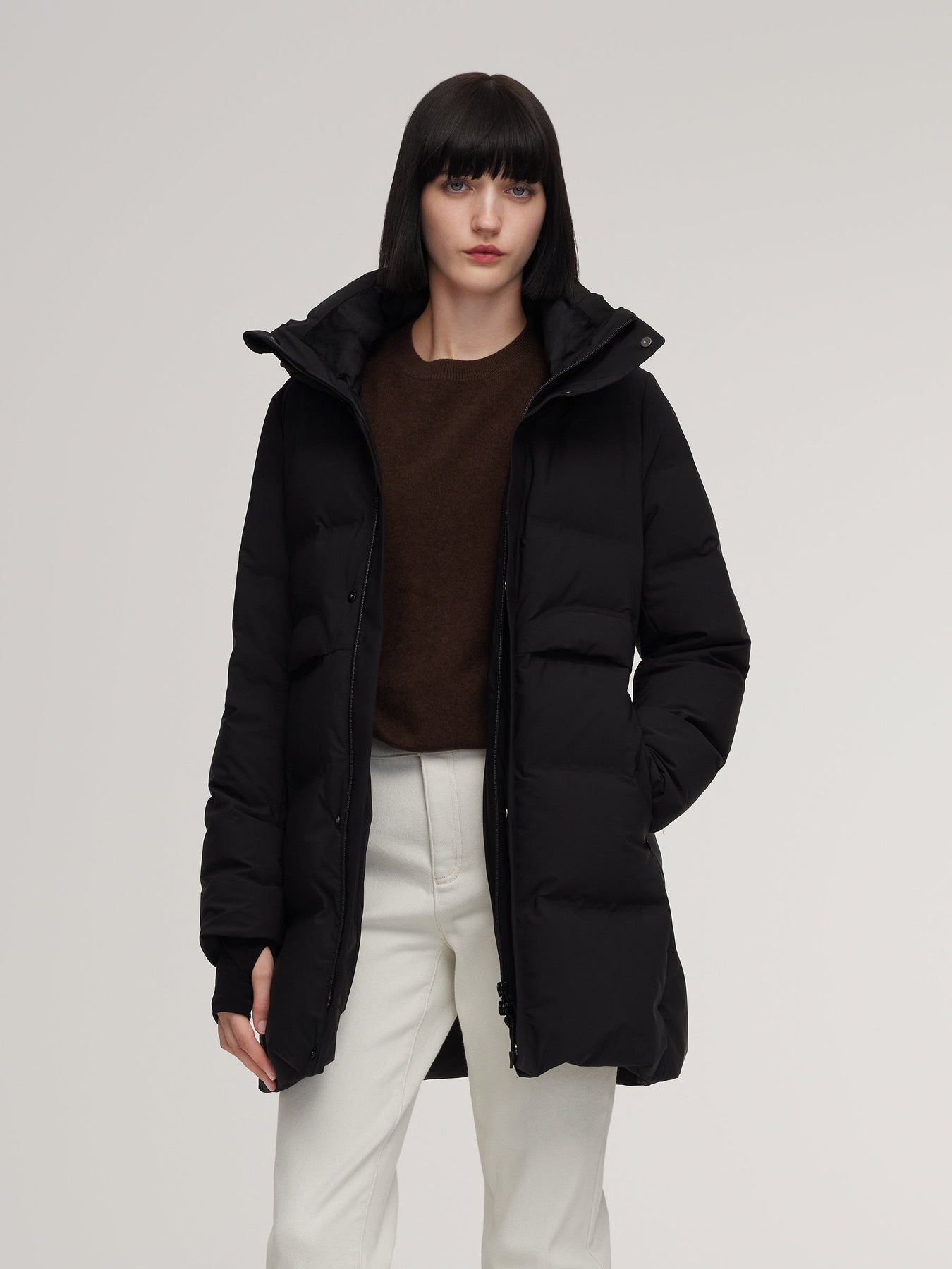 This winter jacket features a streamlined silhouette that offers consistent warmth through its thoughtfully insulated construction. The hood maintains a structured shape for reliable coverage, while the inner back panel includes thermal support that enhances heat retention without adding bulk. Wind-resistant cuffs and discreet pocket placements keep the profile clean while supporting everyday practicality. With integrated carry straps for hands-free convenience, the jacket is suited for winter routines that shift between movement and rest.