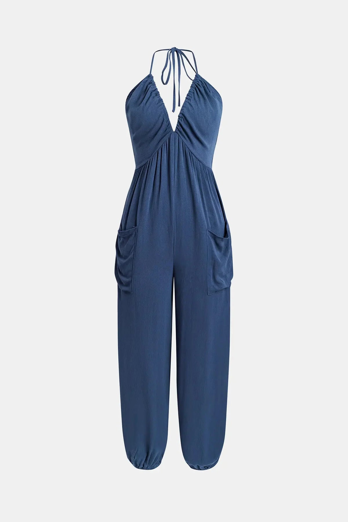 Hanah | Women’s halter jumpsuit with deep v neckline and pockets