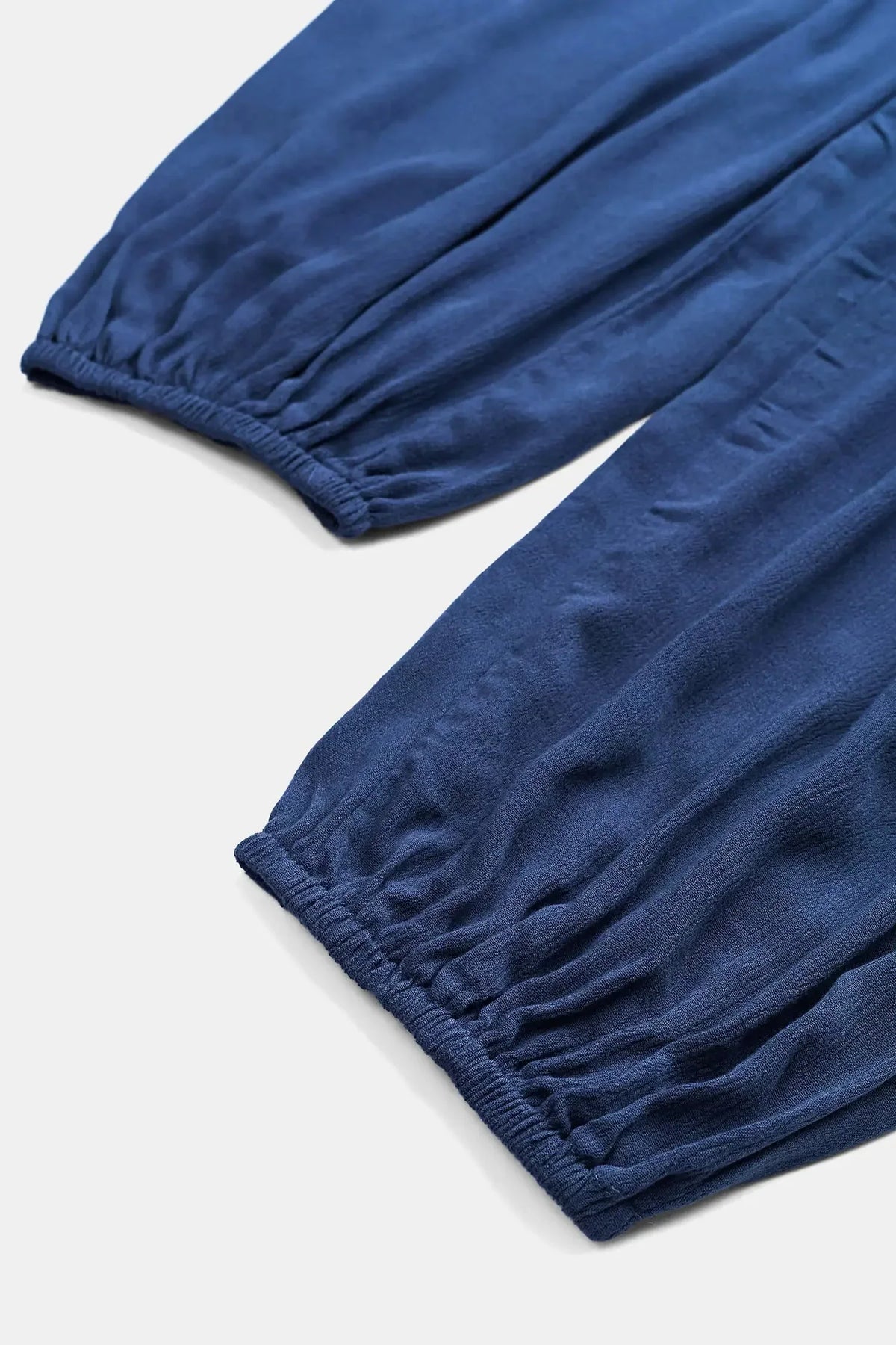 This women’s halter jumpsuit features a plunging v neckline and relaxed silhouette that flows beautifully with every step. Designed with convenient side pockets and a gathered hemline, it blends casual ease with chic detailing. The halter tie adds a flattering touch to the shoulders, making it perfect for seaside strolls or summer evenings. Lightweight and breezy, this jumpsuit is an ideal go-to for warm-weather style. Whether barefoot on the sand or dressed up with accessories, it’s a versatile statement piece.