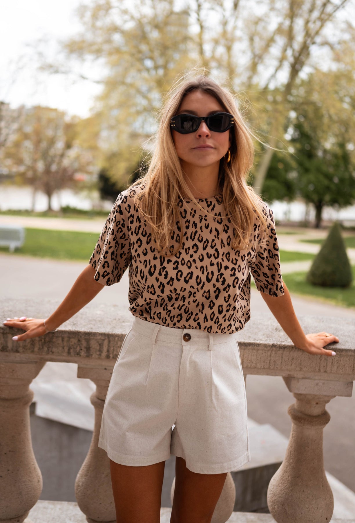 These high-waisted shorts are designed with a structured waistband and a clean pleated front, giving them a polished yet versatile look. Falling to mid-thigh, the cut offers balance between ease of movement and a smart silhouette. The button and zip closure, along with side pockets, ensure practical wear while maintaining a streamlined style. Ideal for everyday outfits, they pair effortlessly with shirts, blouses, or simple tops.