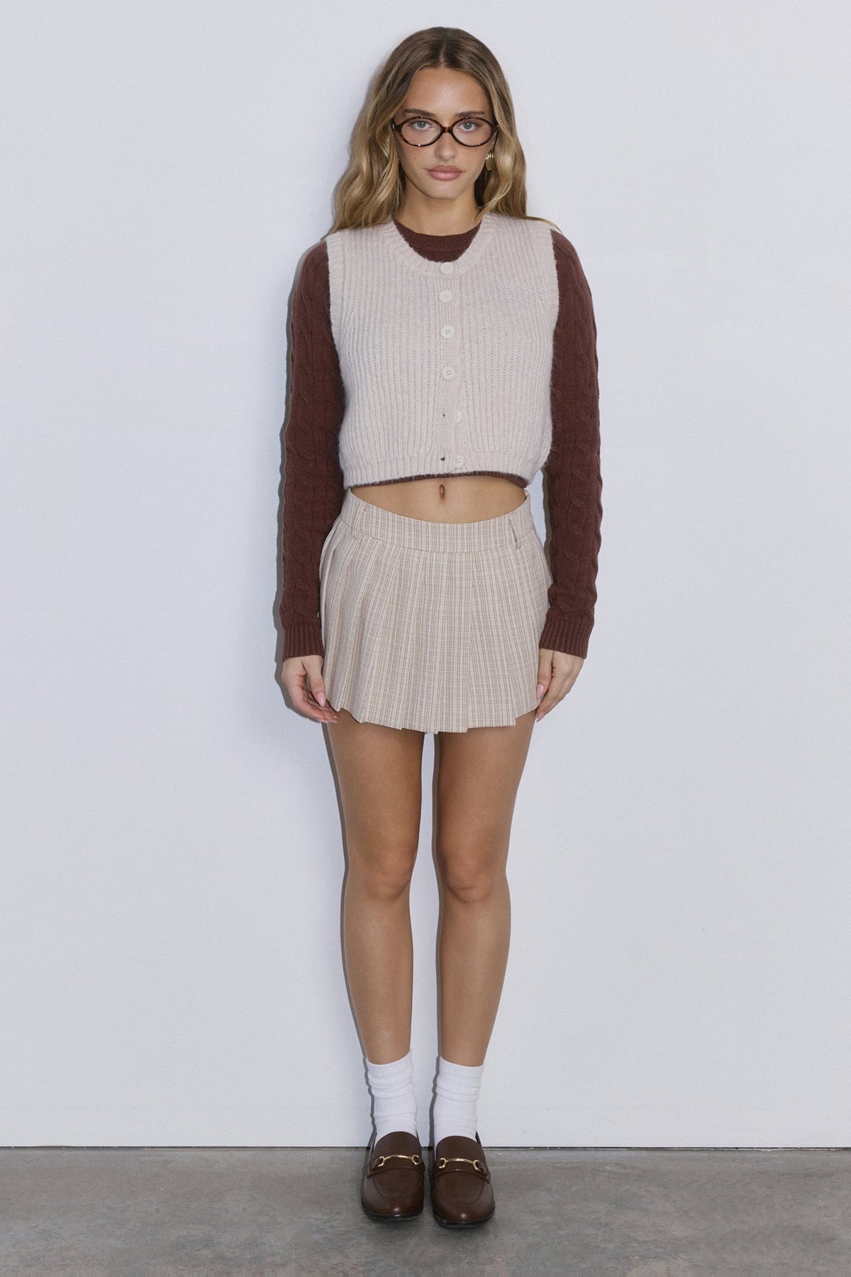 This women’s knit vest offers a cozy yet polished layer, perfect for transitional styling. Designed with a classic button-up front and soft ribbed texture, it balances comfort with understated sophistication. The cropped cut makes it easy to pair over shirts or dresses, while the neutral beige tone adds effortless versatility. A wardrobe essential that brings texture, depth, and subtle elegance to everyday outfits.